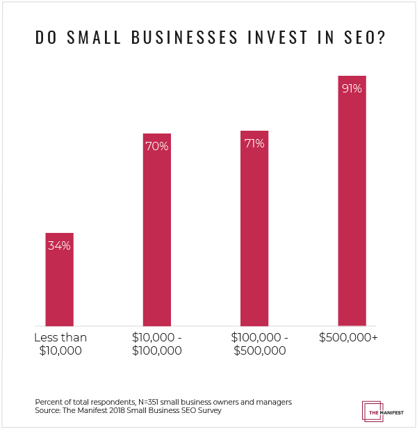 However, only one-third (34%) of small businesses that spend $10,000 or less on marketing per year will invest in SEO in 2018.