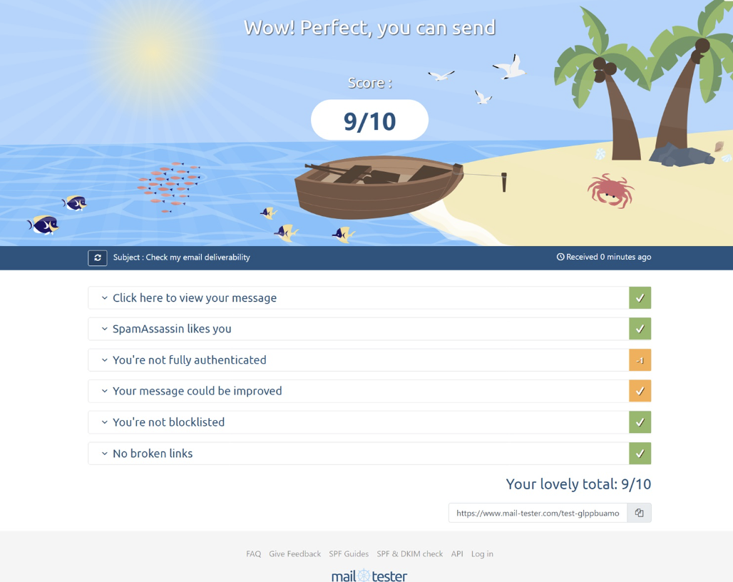 I checked my email deliverability with this tool, and here’s my score