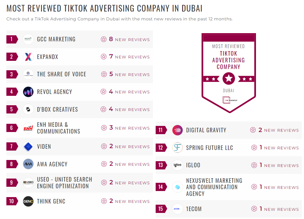 Following extensive research, The Manifest officially names the most reviewed and recommended B2B service providers in Dubai, United Arab Emirates for 2024.
