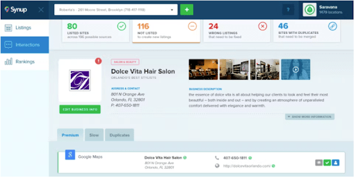 Their listing management tool helps keep track and manage local citations, or online mentions of a business’s name, address, and phone number (NAP).