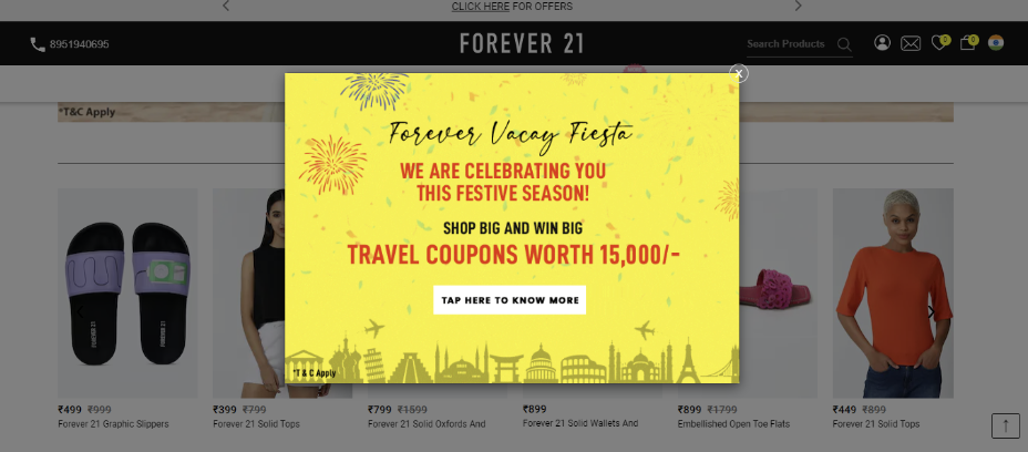 Before the user can return to the main page, they need to take an action within the modal. For instance, a user might click a call to action (CTA) button to sign up for an offer or close the modal entirely.
